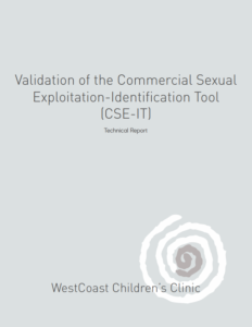 Commercial sexual exploitation of children in the U.S. is recognized as a child welfare, mental health, and public health crisis. Despite growing awareness of the problem, it is poorly understood and difficult to recognize. The lack of a standard, validated screening tool for use in settings where vulnerable youth are served severely hampers the ability of public agencies to identify victims early and provide targeted services. To address the need for early identification, credible prevalence estimates of children who experience CSE, and improved response and protection for exploited youth, WestCoast developed, pilot tested, and validated a screening tool to identify exploited youth. This report describes the development of the screening tool — called the Commercial Sexual Exploitation–Identification Tool (CSE-IT) — and the pilot test results and validity evidence for the CSE-IT.